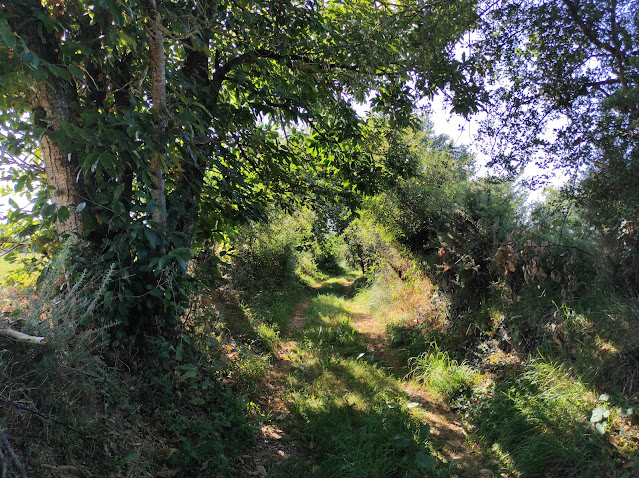 Ces croix disséminées le long du chemin, n'étaient-elles pas déjà les prémices du balisage? Pour un automobiliste le plus court chemin d'un point à un autre, c'est la ligne droite. Pour un randonneur le plus court chemin d'un point à un autre, ce sont les sentiers qui vont un coup à droite, un coup à gauche pour trouver des passages sous une couverture feuillue, offrant en prime de jolis points de vue sur l'horizon.